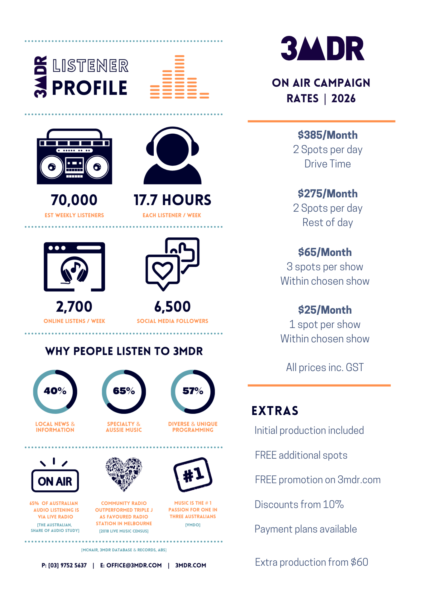 All packages include your business’ logo (Station Sponsors) and contact details (Show Sponsors), on 3mdr.com